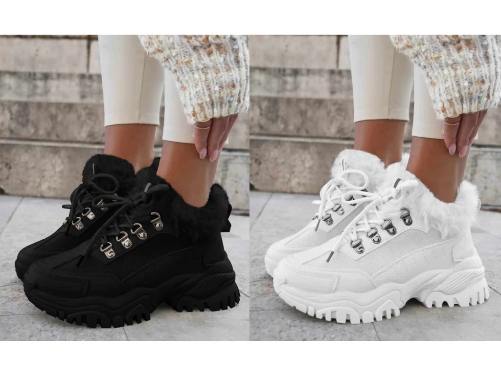 Dámské zimní boty s kožíškem a robustní podrážkou – černé nebo bílé