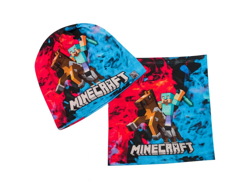 Tato stylová dětská sada Minecraft – čepice a nákrčník je perfektní volbou pro každého malého hráče! Pestrobarevný potisk se Stevem na koni z populární hry Minecraft zaujme na první pohled. Čepice i tunelový nákrčník jsou vyrobeny z příjemného, elastického materiálu, který se dobře přizpůsobí tvaru hlavy i krku.