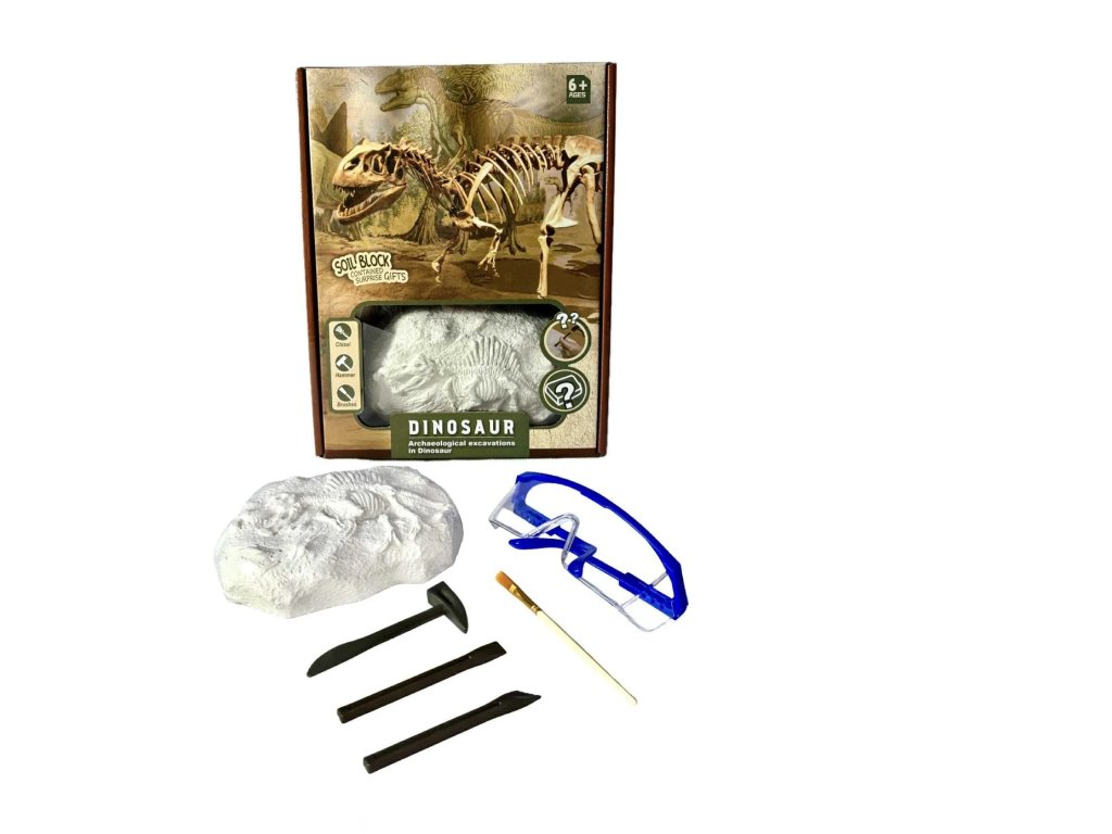 Obsah balení: | Sádrový blok s ukrytým dinosaurem, kladívko, dlátko, štětec, ochranné brýle |