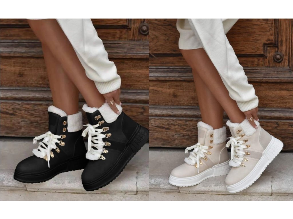 Hledáte ideální zimní obuv, která vás nejen zahřeje, ale zároveň doplní každý stylový outfit? Tyto zateplené kotníkové boty s beránkem a šněrováním jsou perfektní volbou pro každodenní nošení. Vyšší podrážka se vzorkem zaručuje stabilitu i v horších podmínkách a měkký vnitřní kožíšek udrží vaše nohy v teple po celý den. Elegantní kovové detaily ve zlaté barvě dodávají botám moderní vzhled.